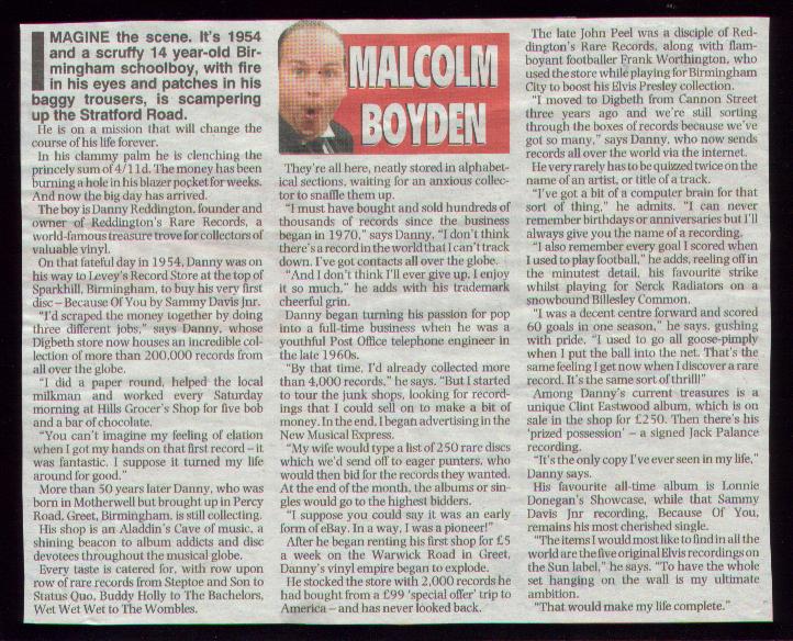 | DANNY REDDINGTON REDDINGTONS RARE RECORDS To contact Danny:- e-mail ~ Dan--Dan--The--Record--Man Phone ~ 07836 388025 |